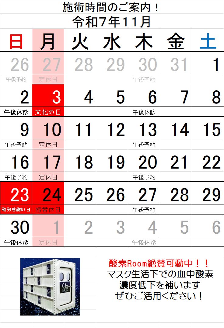 さて、それでは、令和7年11月度の休日案内です。下記カレンダーを参照してください。